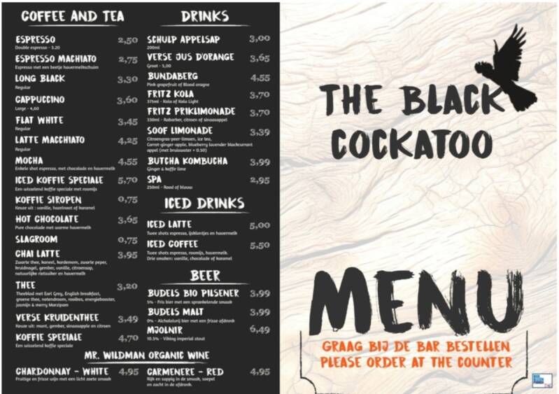 The Black Cockatoo is een vegan lunchcafé in het centrum van Almere. Onze gerechten zijn 100% plantaardig, met liefde bereid en waar mogelijk biologisch en lokaal geproduceerd. Koffie maken wij uitsluitend met de beste kwaliteit koffiebonen van Sprout Coffee Roasters uit Eindhoven. Je bent bij ons ook aan het juiste adres voor heerlijke huisgemaakte vegan taarten, brownies, chocolate chip cookies en bananenbrood. Kom dus snel langs voor een vegan lunch of een cappuccino met een lekker stukje taart.